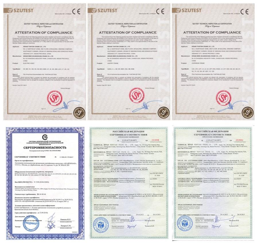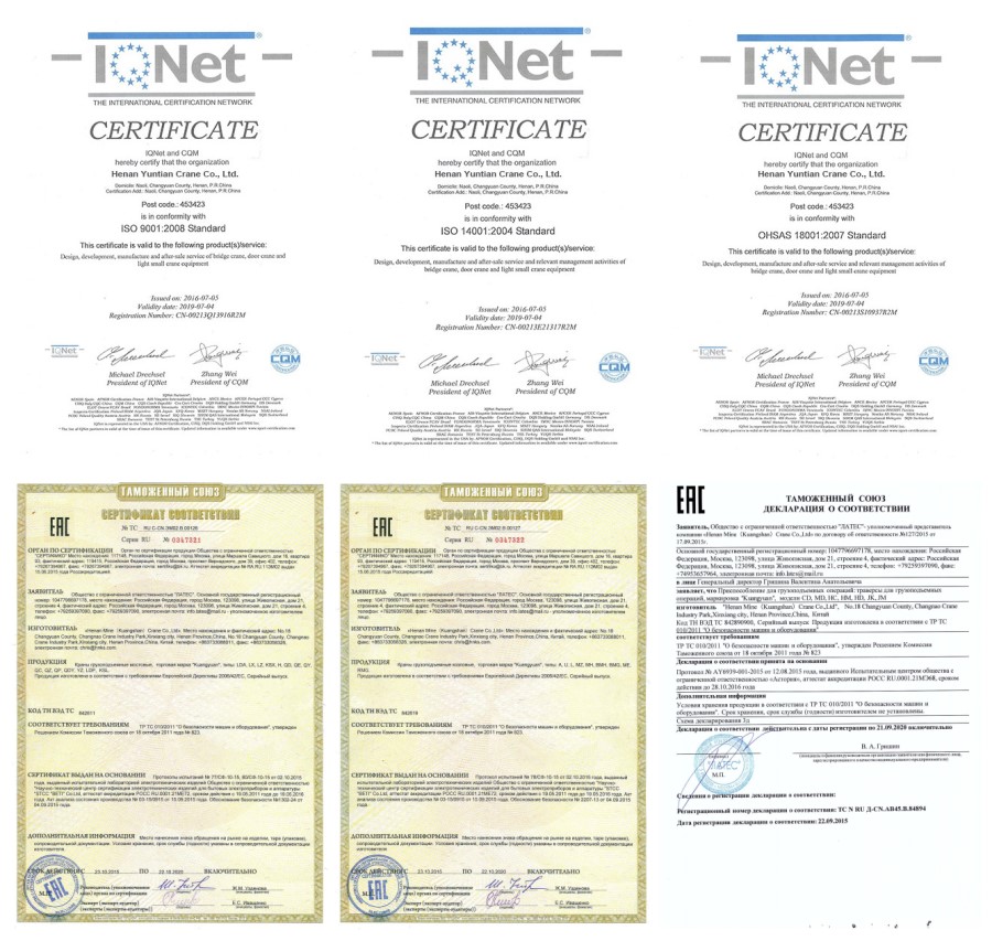 Il-krejn tagħna għadda CE, ISO, GOST, SGS, TUV, BV, eċċ.